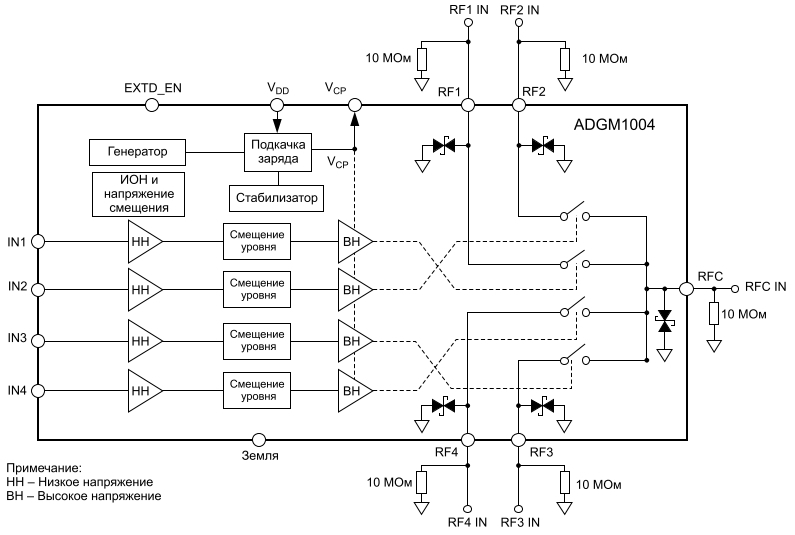 Функциональная схема МЭМС-коммутаторов ADGM1004 и ADGM1304