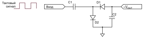 Схема одного из диодно – конденсаторных каскадов, который обеспечивает высокое выходное напряжение, приведена на рисунке 1а. Наиболее примечательным в этой схеме является то обстоятельство, что номинальные напряжения диодов и конденсаторов каждого каскада должны соответствовать напряжениям этого каскада, а не сумме напряжений всех предыдущих каскадов, хотя выходное напряжение цепочки каскадов (см. рис. 1б) равно именно суммарному напряжению всех каскадов, составляющих цепочку!