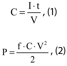 где С – емкость конденсатора снабберной цепи; I – ток стока в начале запирания ключа; t – время запирания ключа; V – напряжение ограничения стока; f – рабочая частота; P – мощность, рассеиваемая снаббером.