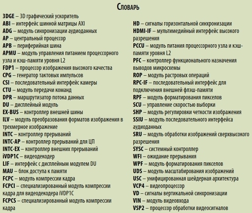 Маршрутизатор DPR управляет потоками данных между модулем RPF, функциональными модулями и WPF. Он, в частности обеспечивает непрерывность обработки изображения без использования внешней памяти за счет перенаправления данных между функциональными модулями. Отметим еще модуль SRU, который обеспечивает обработку изображений сверхвысокого разрешения, и модуль масштабирования изображений UDS.