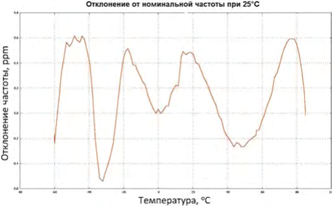 Температурная нестабильность частоты в диапазонах –60…85°С/ 60…125°С, ppm | < ±1,0/< ±2,0 | |
