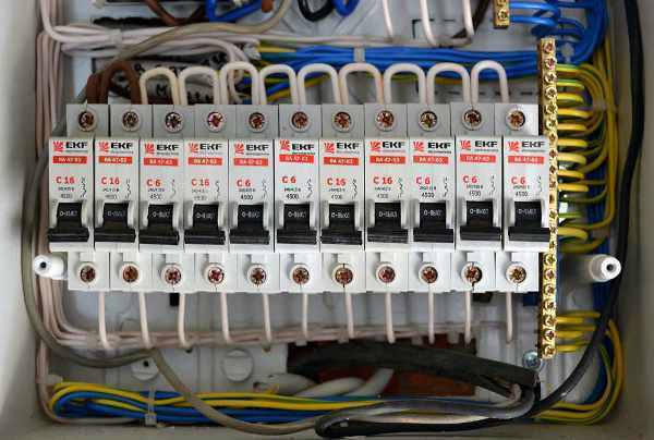 Автоматический выключатель защиты сети снабжён датчиками протекающего тока (электромагнитными и/или тепловыми), при превышении тока сверх номинального, разрывают цепь размыканием контактов, обычно, движение контактов на размыкание производится посредством предварительно взведённой пружины.