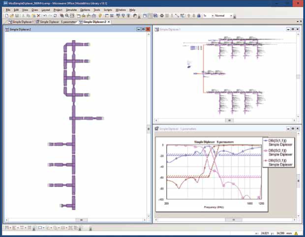 Успех проекта достигается благодаря эффективным инструментам оптимизации Microwave Office, точным и гибким моделям компонентов разных производителей от Modelithics и автоматизированному проектированию от Nuhertz. На основе предлагаемого подхода можно получить готовые к производству проекты диплексеров, дуплексеров и триплексеров, удовлетворяющие электрическим и физическим требованиям. N-плексеры можно реализовать на основе комбинации блоков ди и триплексеров в Microwave Office путем копирования и вставки элементов. Для более детального анализа и оптимизации методами электромагнитного моделирования применяются планарный симулятор AXIEM и 3D-симулятор Analyst.