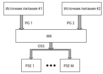 На рисунке 9 показана структурная схема PSE-системы с двумя источниками питания. Каждый из них имеет возможность отправить микроконтроллеру сигнал индикации PG в качестве прерывания.