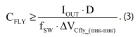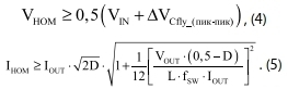 чтобы в полной мере воспользоваться преимуществами GaN-ключей с меньшим номинальным напряжением, напряжение плавающего конденсатора поддерживается на уровне ½VIN во избежание падения чрезмерного напряжения на GaN-к лючах. Таким образом, плавающий конденсатор должен ограничить пульсацию напряжения ΔVCfly_пик-пик достаточно малой величиной согласно уравнению (3):