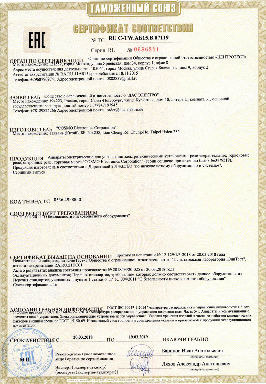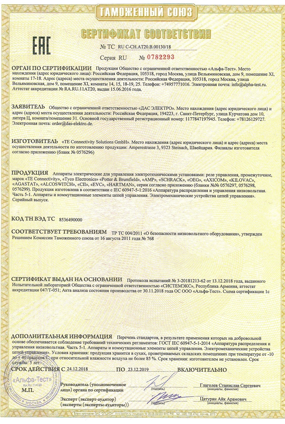 ТС RU С-CH.АТ20.В.00130/18