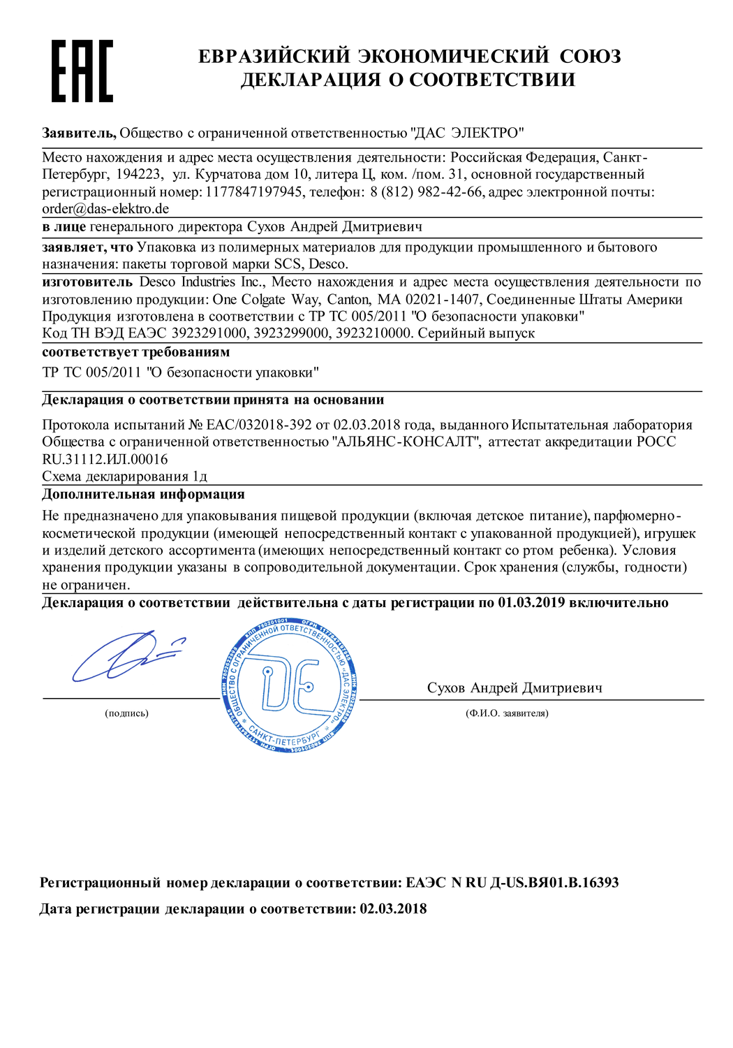 ДС ЕАЭС N RU Д-US.ВЯ01.В.16393