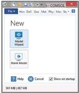 Создание проекта в COMSOL Multiphysics предусматривает применение мастера, запуск которого выполняется из стартового окна программы (см. рис. 2) нажатием пиктограммы Model Wizard.